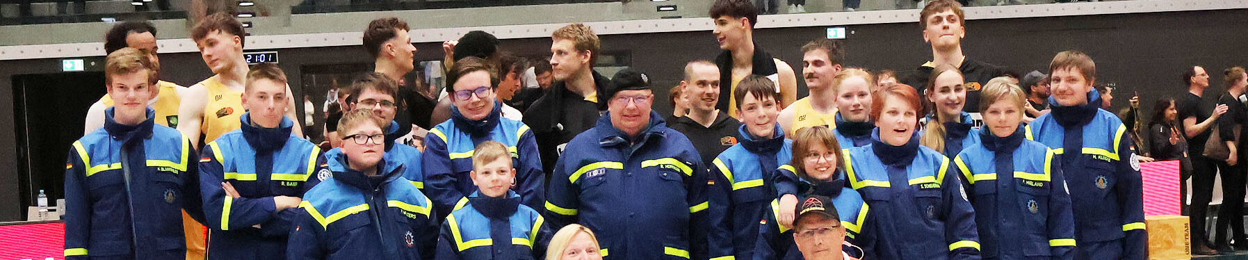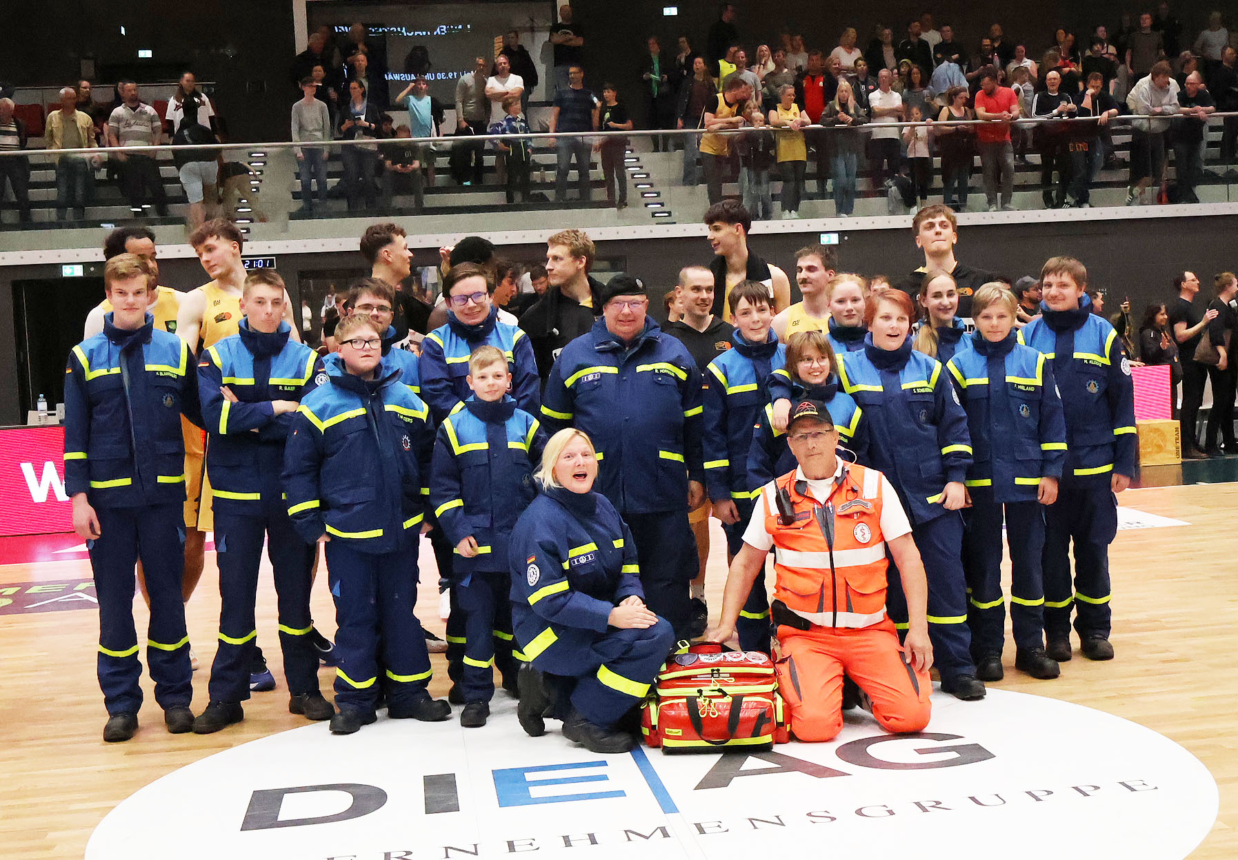 Schnell wurde gerätselt, was nun passieren würde. Die Überraschung: Heike hatte Freikarten für das Heimspiel des SSV-Lok Bernau im Viertelfinale der 2. Barmer Basketball Bundesliga in der S-Arena organisiert! Die Begeisterung war riesig. Anfangs noch etwas müde vom Tag, wurde die Gruppe mit jeder Minute des Spiels lebendiger. Spätestens in der spannenden Schlussphase war die Jugendgruppe lautstark am Anfeuern und nach dem Sieg von Lok Bernau gab es kein Halten mehr. Doch damit nicht genug: Direkt nach dem Spiel durfte die Gruppe mit aufs Spielfeld, wo die Spieler für ein gemeinsames Foto zusammenkamen - ein unvergesslicher Moment.