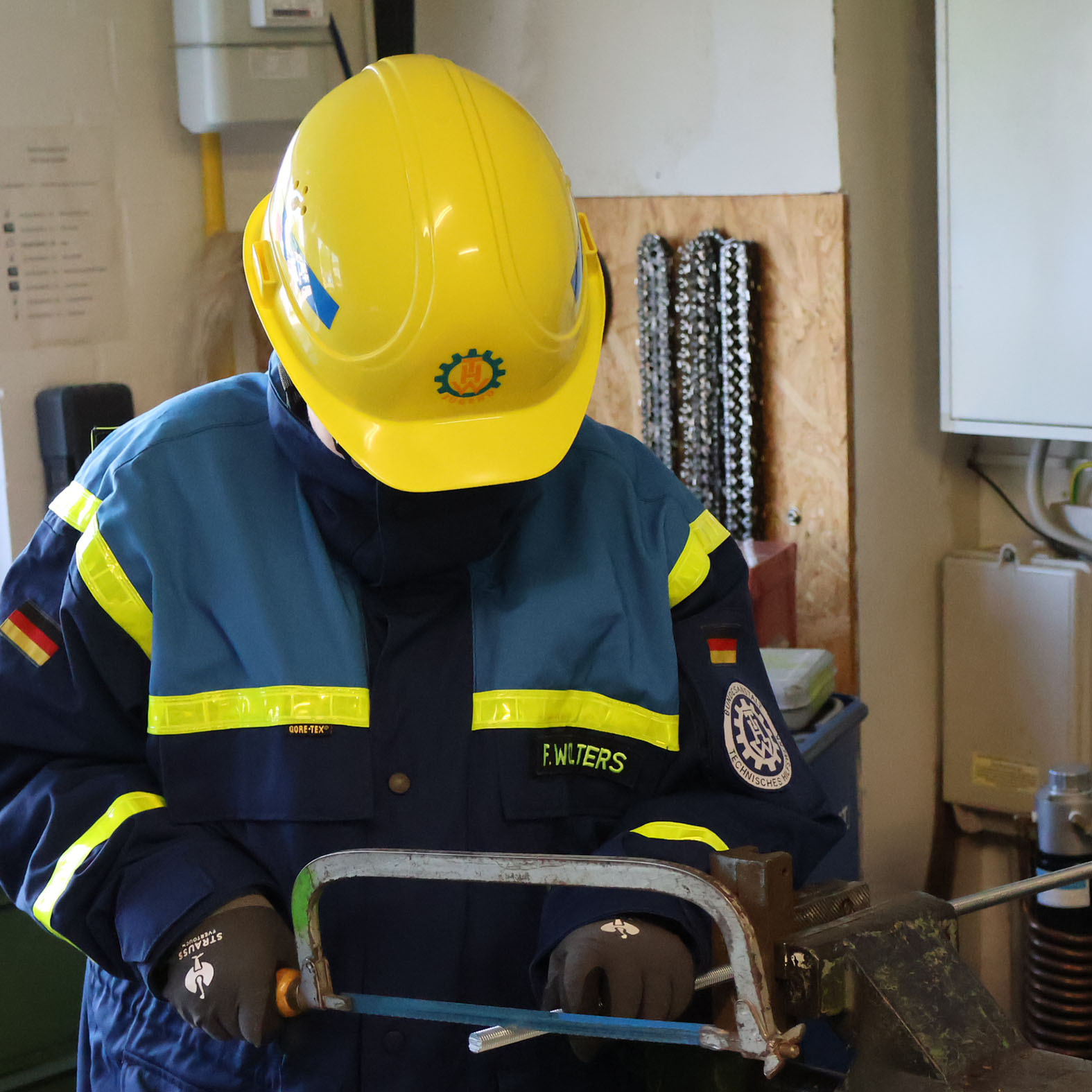 Währenddessen die Vorprüflinge schwitzten, waren sieben Ausbilder gemeinsam mit den übrigen Jugendlichen fleißig und bereiteten sechs spannende Ausbildungsstationen sowie eine zusätzliche Teamaufgabe vor. Danach wurden die Jugendlichen in Zweierteams aufgeteilt, und es ging direkt an die Praxis: An jeder Station galt es, Aufgaben zu bewältigen - genau so, wie es später auch in einer echten Prüfung gefordert wird. Dabei stellte sich ein Jugendlicher jeweils der Aufgabe, während der andere als Stationshelfer unterstützte – anschließend wurde getauscht. Nach jeder Station gab es - wenn nötig - eine kurze Einschätzung der Ausbilder mit wertvollen Tipps zur Verbesserung.