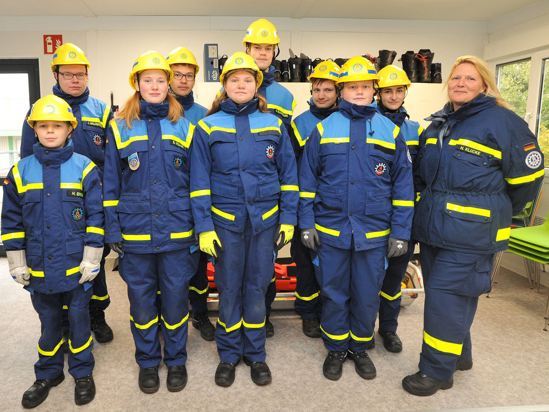 Was als improvisiert angedeutet wurde, entpuppte sich schnell als gut geplant. Vom GKW des Ortsverbandes wurden schnell noch Schaufeltrage und Spineboard organisiert, dann erklärte Heike Klocke den Jugendlichen das Übungsszenario: In einem eingestürzten Haus werden noch zwei Personen vermisst; der Ortsverband wird zur Hilfe bei der Suche und Rettung angefordert.