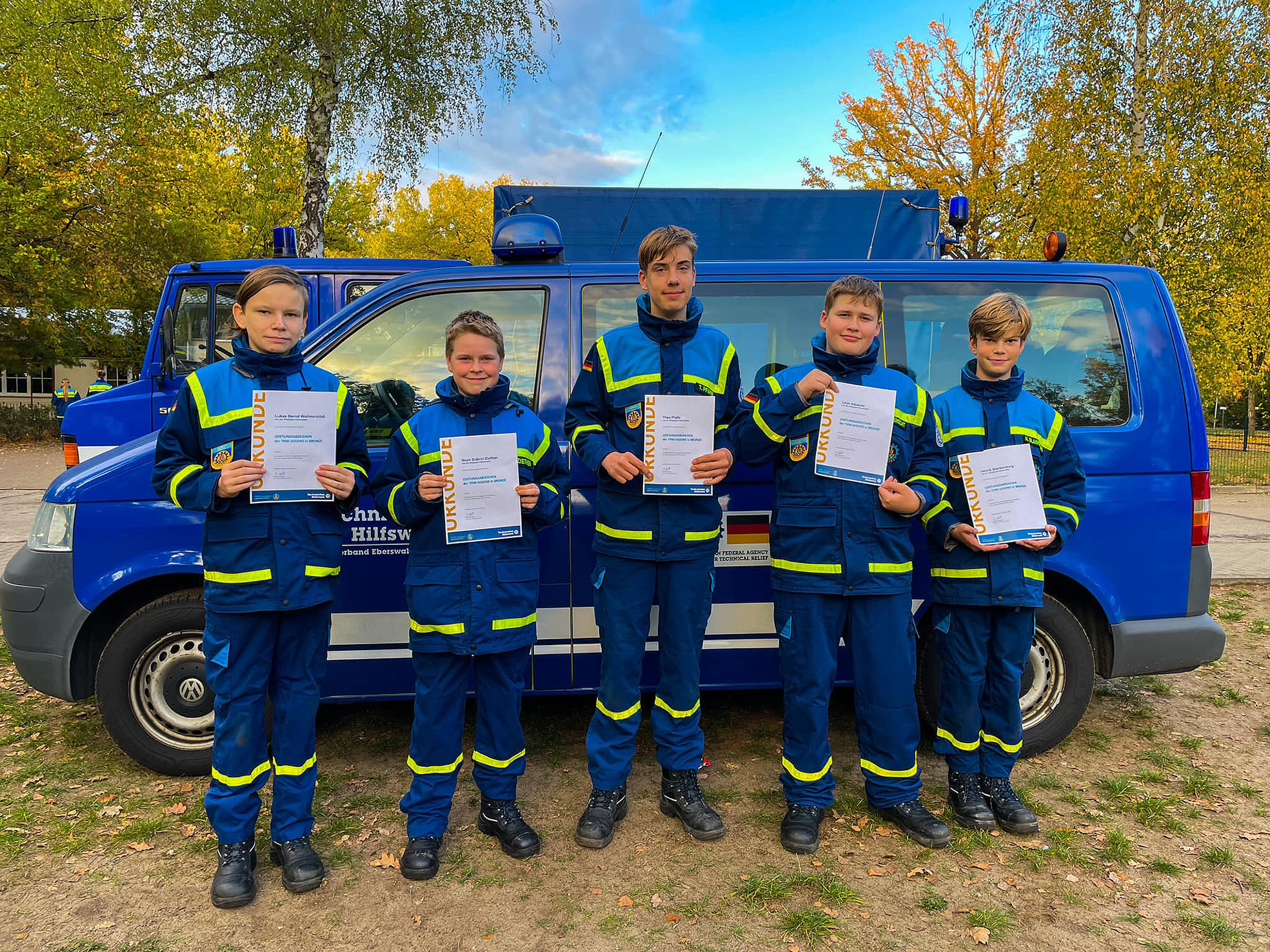 Der Ortsjugendbeauftragte Phillip Ladányi strahlte: "Wir freuen uns sehr darüber, dass alle fünf Junghelferinnen und Junghelfer die Prüfung gemeistert und erfolgreich das Leistungsabzeichen bestanden haben."