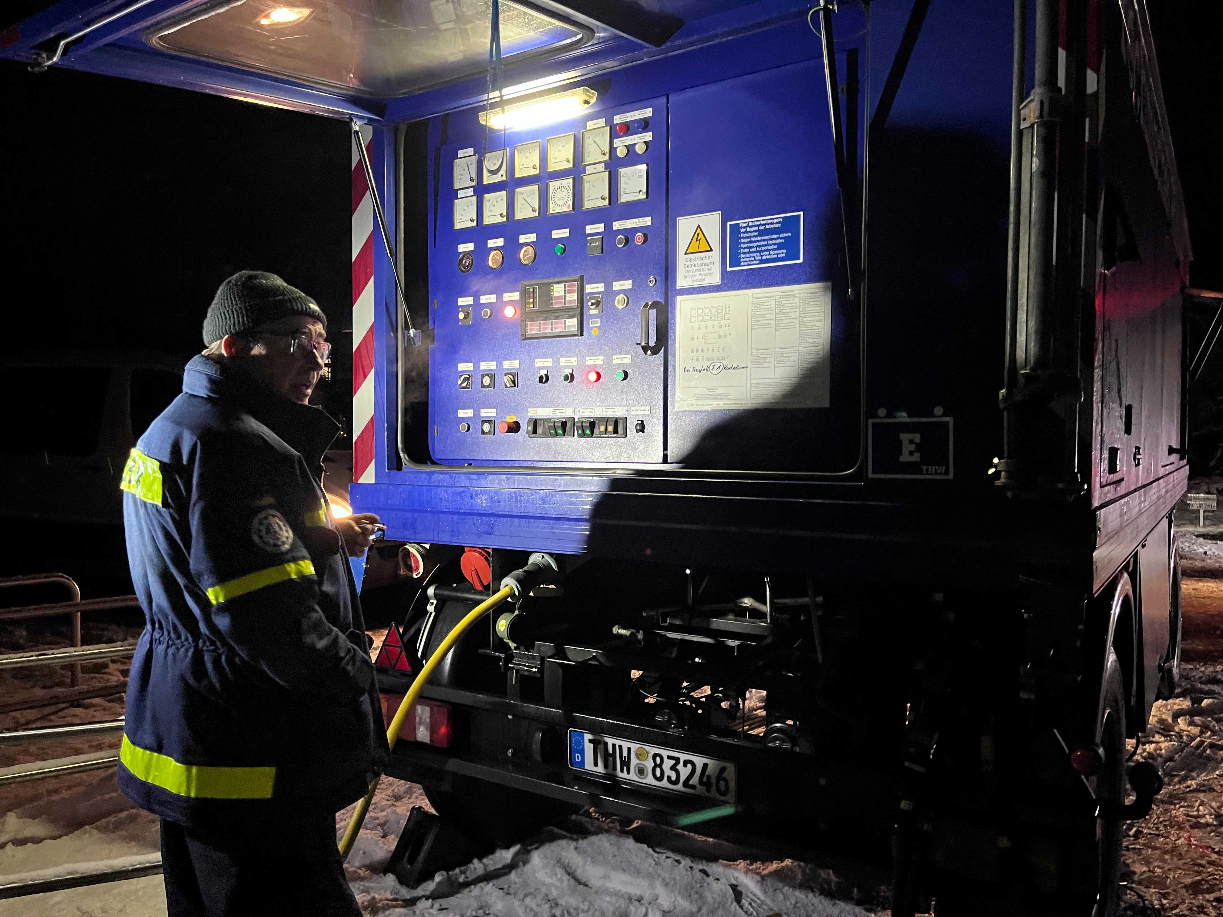 Aufgabe unserer Fachgruppe Elektroversorgung war es mit unseren Notstromaggregat vor Ort zu helfen und an den von der Einsatzleitung vorgegebenen Orten Strom einzuspeisen. Hierbei handelte es sich im Krankenhäuser, Pflegeeinrichtungen, Schulen oder sogar Strukturen des öffentlichen Nahverkehrs. Alarmiert wurden wir am 03.01.2026 und waren bis einschließlich 12.01.2026 im Einsatz. Hierbei arbeitete unser Team Rund um die Uhr in Schichten, um der Vielzahl der Aufgaben gerecht zu werden.