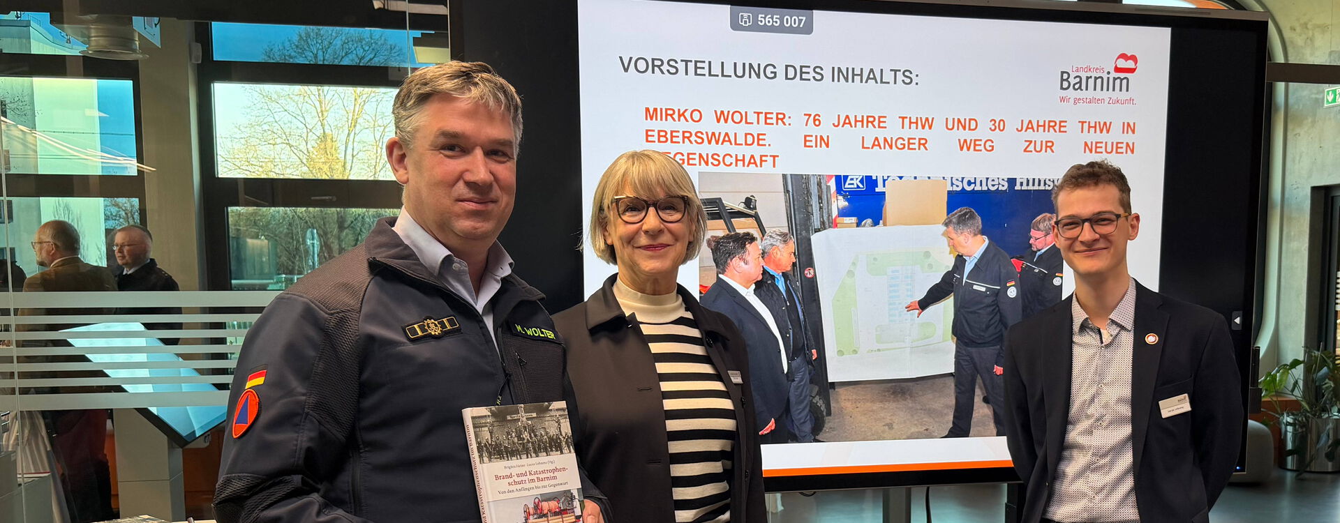Am Donnerstag, den 09.04.2026 wurde in einem würdigen Rahmen in den Räumen des Kreisarchives des Landkreises Barnim das Buch - Brand- und Katastrophenschutz im Barnim - Von den Anfängen bis zur Gegenwart - von den Herausgebern Brigitta Heine und Lucas Lebrenz vorgestellt. Mit dabei der Eberswalder THW Ortsbeauftragte Mirko Wolter, der als einer von 19 Autoren an diesem Buch mitwirkte.