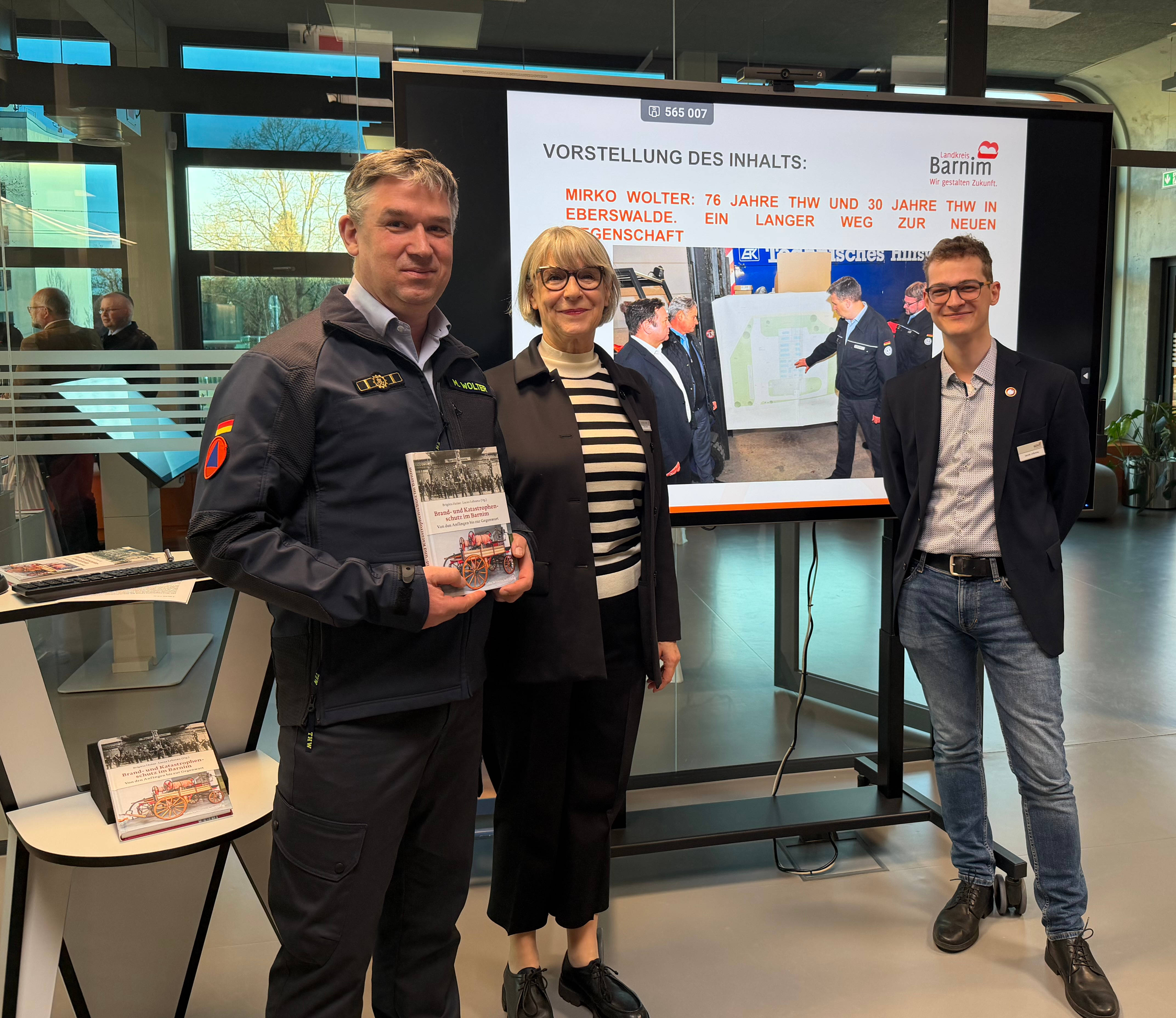 Am Donnerstag, den 09.04.2026 wurde in einem würdigen Rahmen in den Räumen des Kreisarchives des Landkreises Barnim das Buch - Brand- und Katastrophenschutz im Barnim - Von den Anfängen bis zur Gegenwart - von den Herausgebern Brigitta Heine und Lucas Lebrenz vorgestellt. Mit dabei der Eberswalder THW Ortsbeauftragte Mirko Wolter, der als einer von 19 Autoren an diesem Buch mitwirkte.