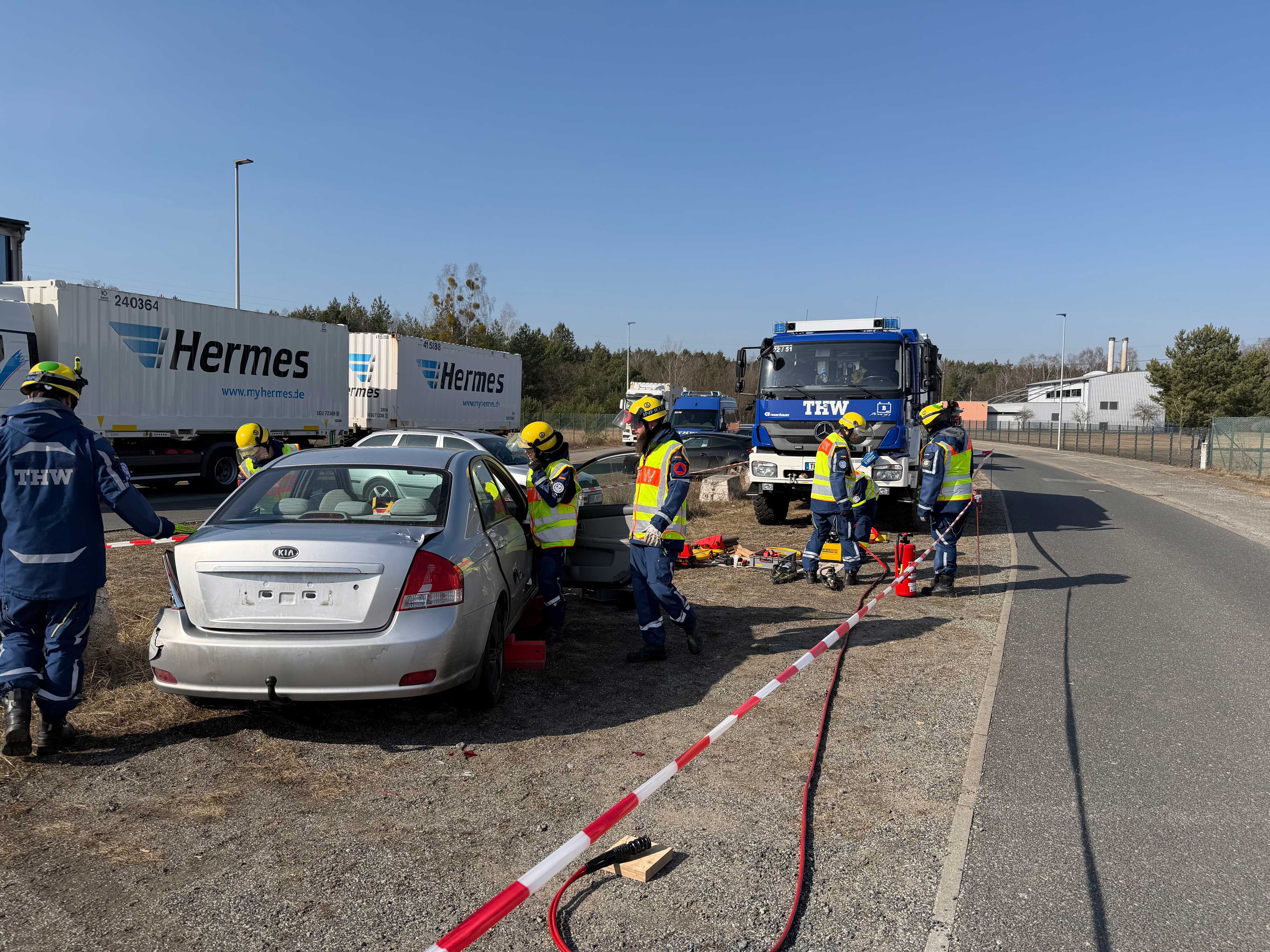 Die Bergungsgruppe nutzte für die Fachausbildung ein von einem Helfer bereitgestelltes Fahrzeug an dem trainiert werden konnte. Dabei ging es bei der Ausbildung nicht um Geschwindigkeit sondern um die richtige Auswahl der Werkzeuge, das Beachten von Gefahren für die Einsatzkräfte und natürlich das Kennenlernen der richtigen Punkte, um ein Fahrzeug schnell öffnen zu können. Aber auch die richtige Abstimmung durch Kommandos und die Besetzung aller wichtigen Positionen sind entscheidend für den Einsatzerfolg.