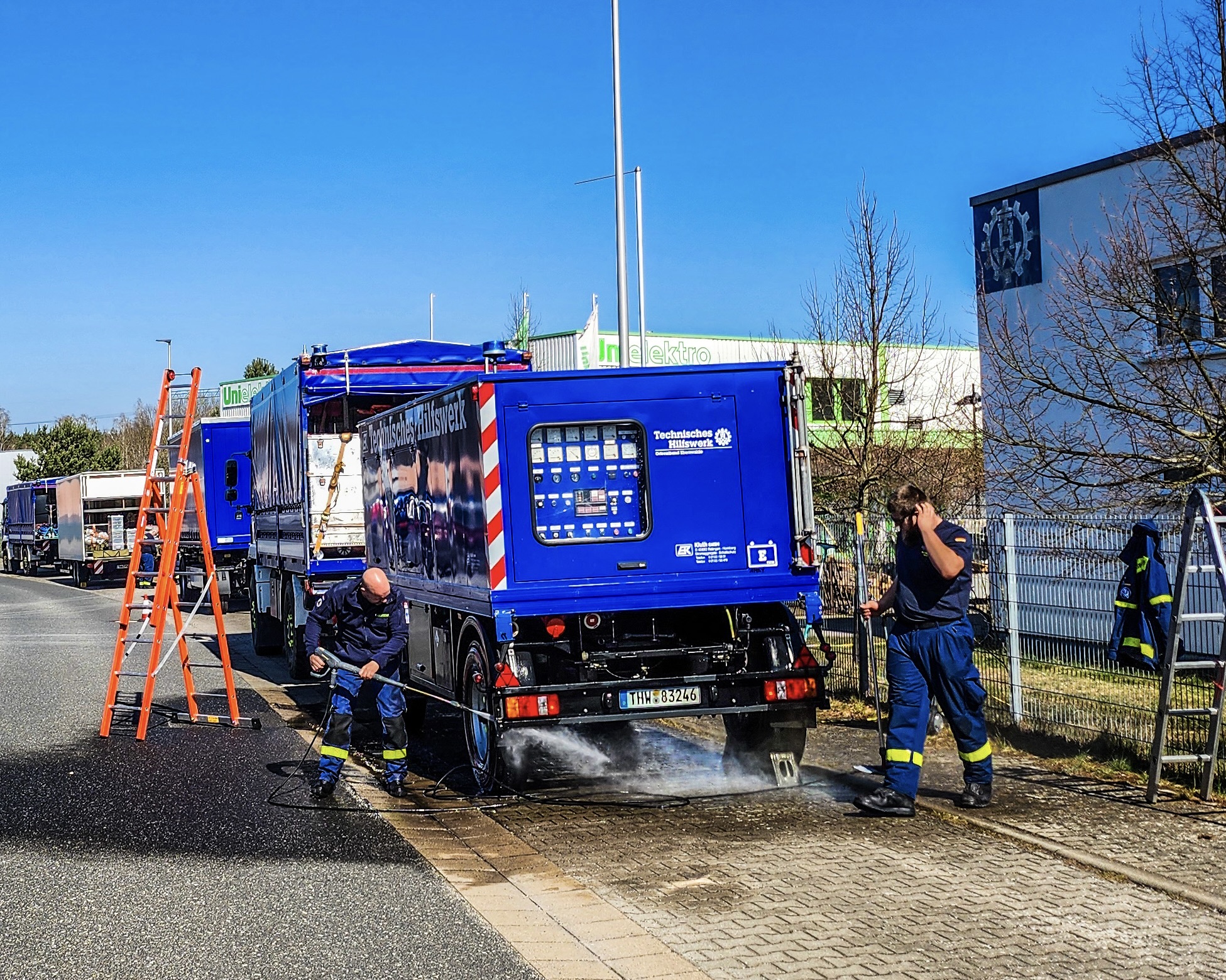 Ein Schwerpunkt lag auf der Wartung der technischen Ausstattung. Pumpen und Stromerzeuger wurden in Betrieb genommen und unter Last getestet, um ihre Funktionsfähigkeit sicherzustellen. Darüber hinaus wurden zahlreiche Fahrzeuge gereinigt und von Rückständen des Winterbetriebs befreit sowie mit neuen Beklebungen zur besseren Zuordnung und Außendarstellung versehen. Auch die Netzersatzanlage (NEA) der Fachgruppe Elektroversorgung kehrte aus der Werkstatt zurück und wurde wieder einsatzbereit gemacht. Eine Netzersatzanlage dient dazu, bei Stromausfällen eine unabhängige Stromversorgung sicherzustellen, beispielsweise für Einsatzstellen oder wichtige Infrastruktur. Aufgrund des Alters war hier ein erhöhter Pflegeaufwand erforderlich. Neben Technik und Fahrzeugen wurde auch der Ortsverband selbst gepflegt, unter anderem wurde der Schaukasten im Außenbereich aktualisiert und neu bestückt.