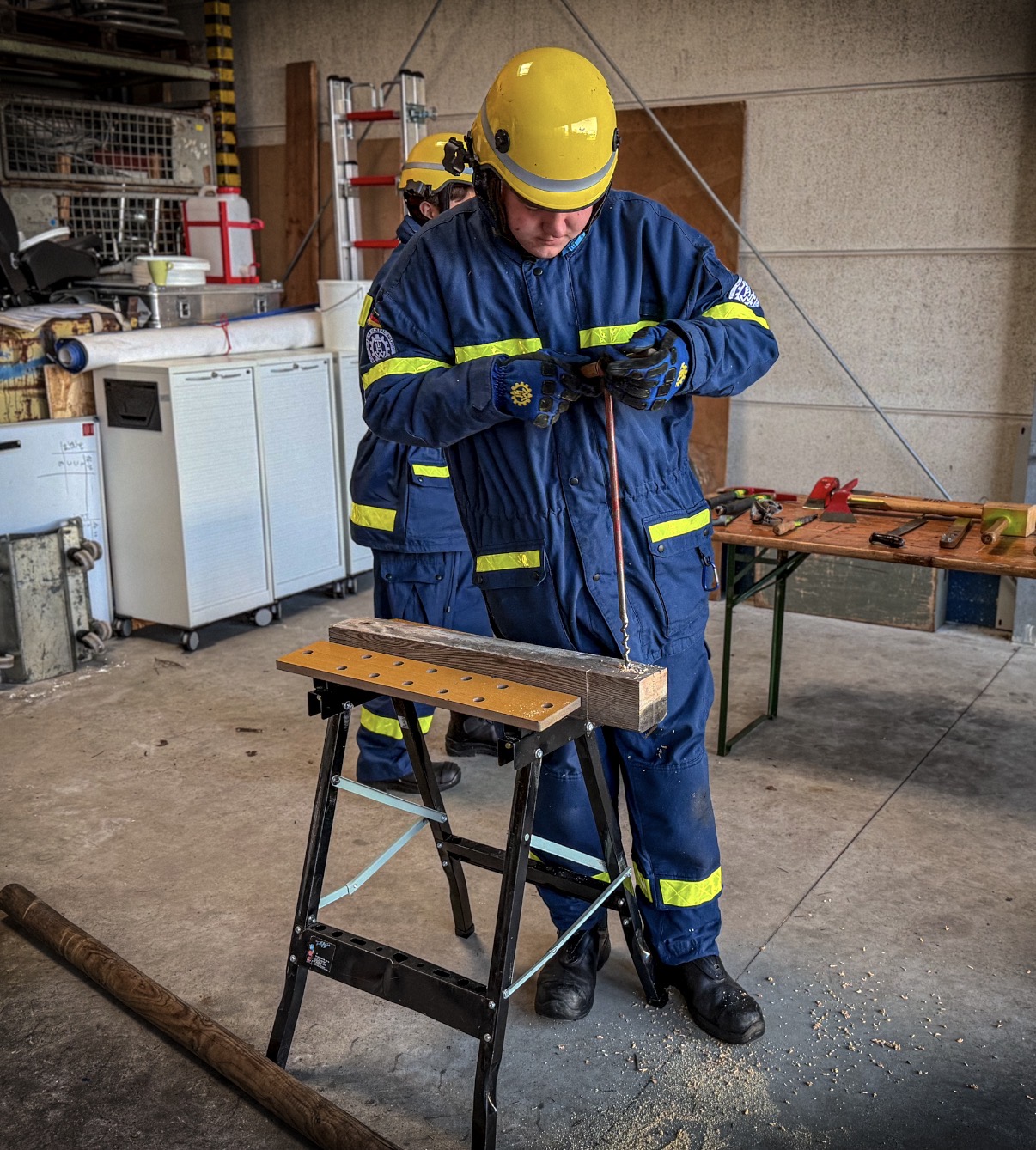 Auch die Ausbildung kam nicht zu kurz: Die Grundausbildungsgruppe beschäftigte sich mit Holzbearbeitung sowie mit der Handhabung des Schere- und Spreizersatzes und vertiefte damit wichtige Grundlagen für den Einsatzdienst. Zudem nehmen vom 19. bis 25. April mehrere Helferinnen und Helfer der Grundausbildungsgruppe am Grundausbildungscamp teil, in dem sie ihre erlernten Kenntnisse vertiefen und sich auf die abschließende Grundausbildungsprüfung vorbereiten, die Voraussetzung für die aktive Mitwirkung im Einsatzdienst ist.